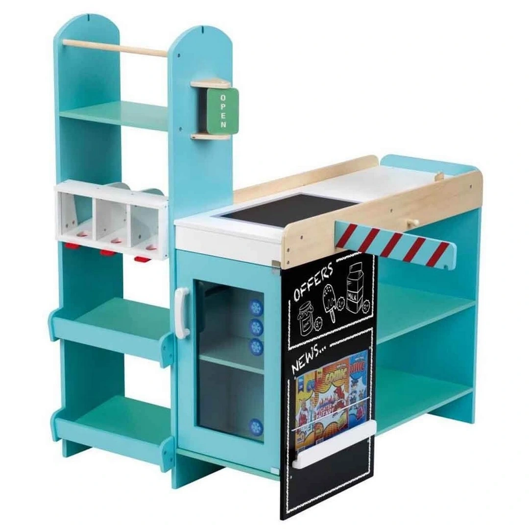 Kutu içerisinde; süpermarket seti, kara tahta, pos cihazı, kasa, broşür standı, tabela, müşteri ayırma çubuğu, çeşitli market ürünleri, 5