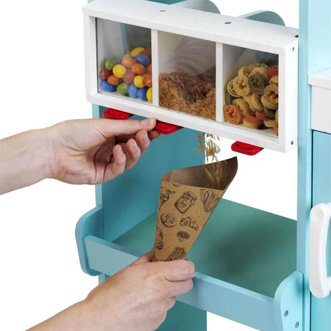 Kasiyer, ürünleri tek tek okutuyor, sıra ödeme kısmına geliyor. Nakit paran yok mu? Sorun değil, Ahşap Süpermarket Oyun Seti’nde