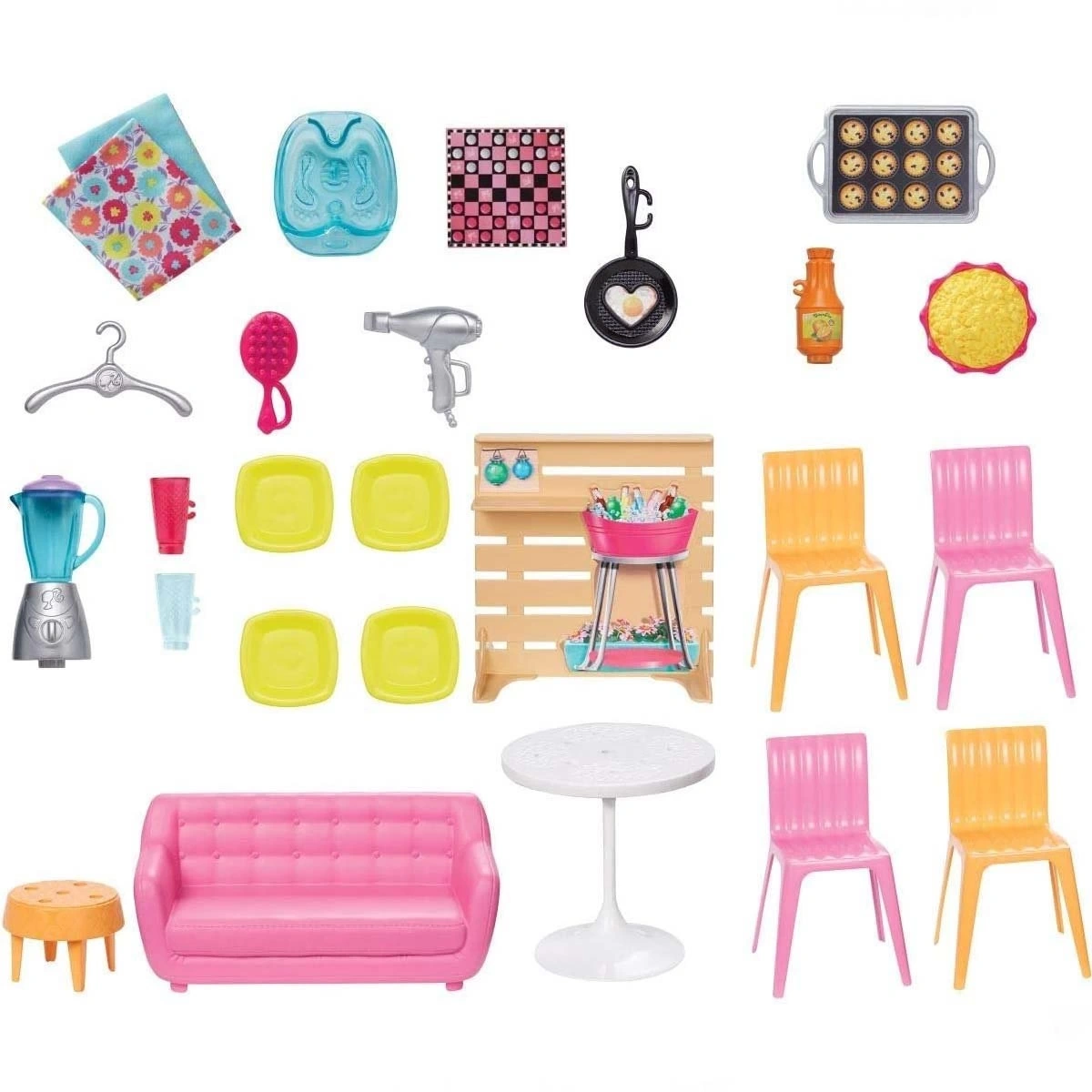 Bu taşınabilir Barbie Malibu Evi sahip olduğu gerçekçi aksesuarlar ile hikayeleri zenginleştiriyor.