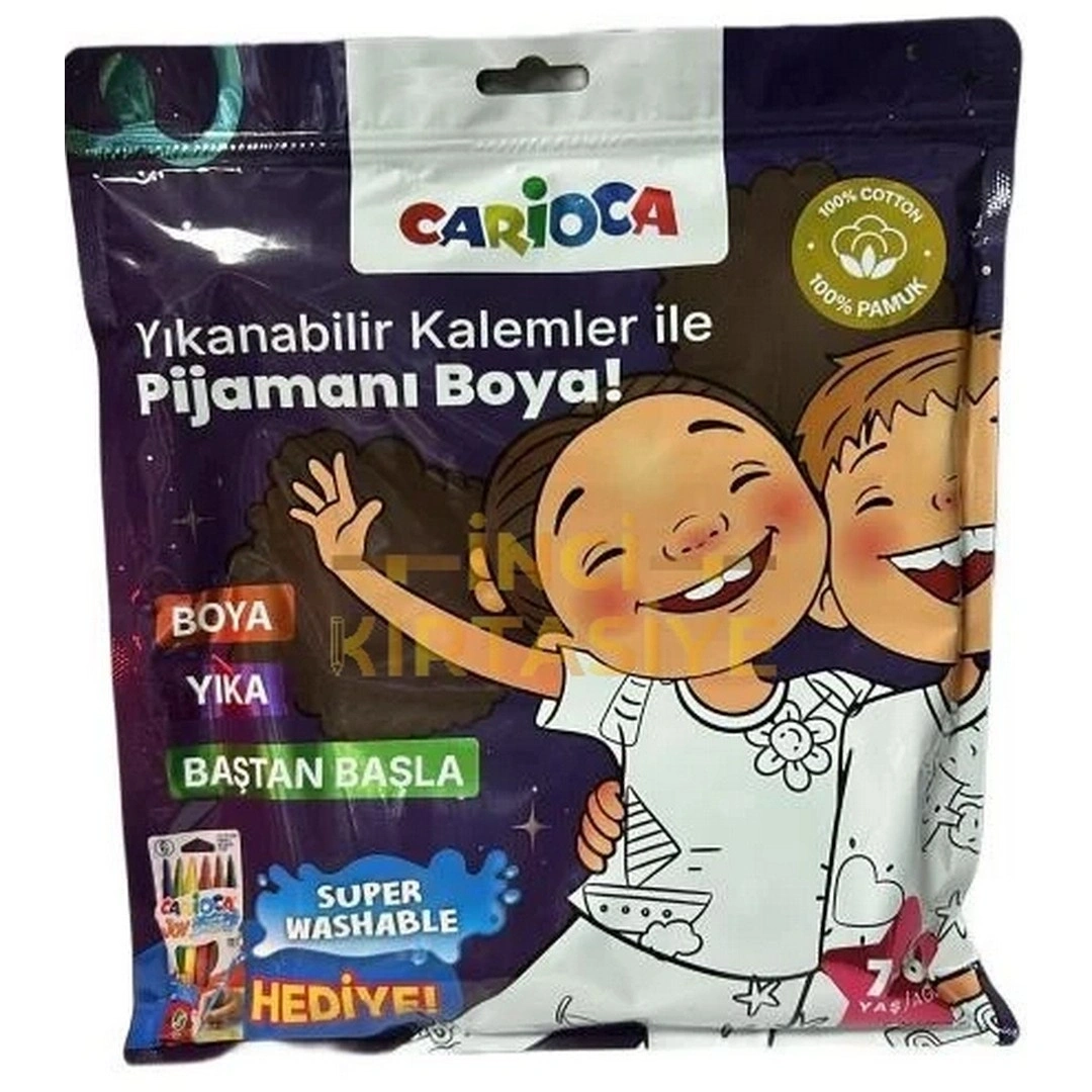 Carioca Boyanabilir Tişört – Keçeli Kalem Hediyeli, çocukların kendi tişörtlerini istedikleri gibi renklendirmelerine olanak tanır. Paket