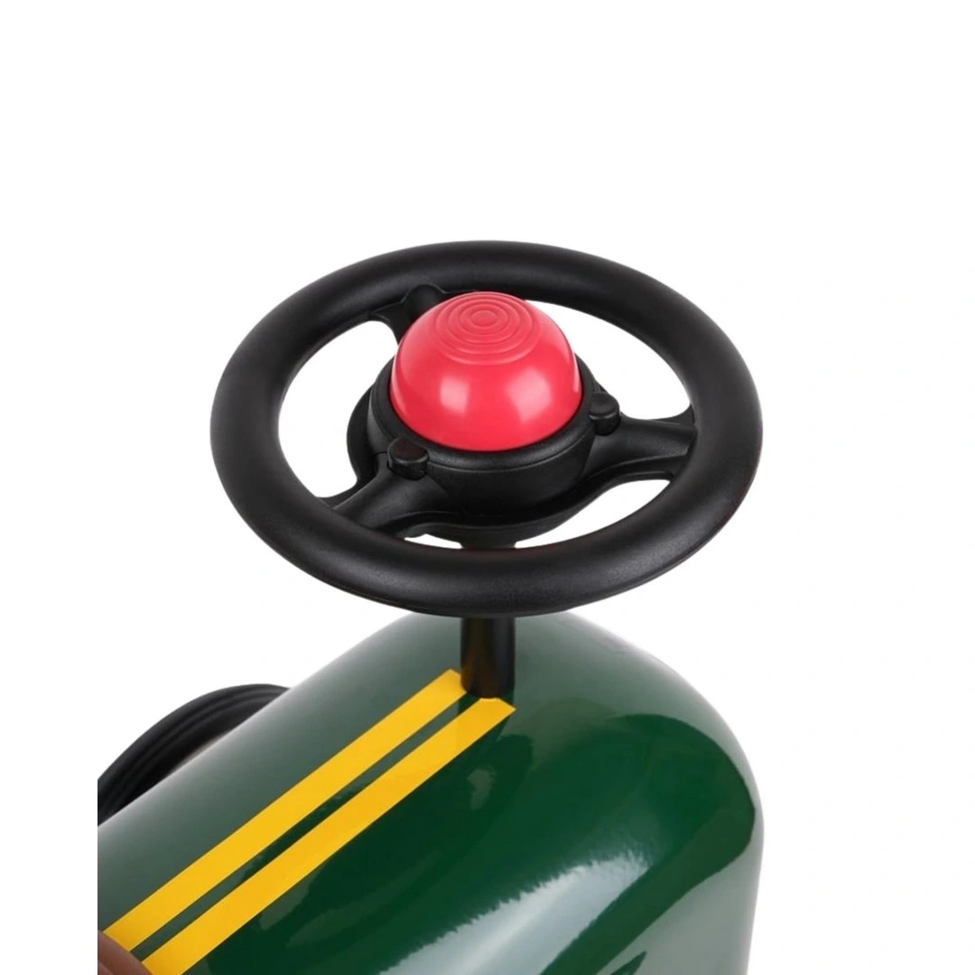 Retro detayları, sade yeşil rengi ve metal gövdesiyle sadece bir oyuncak değil; çocuk odalarına nostaljik bir karakter kazandıran