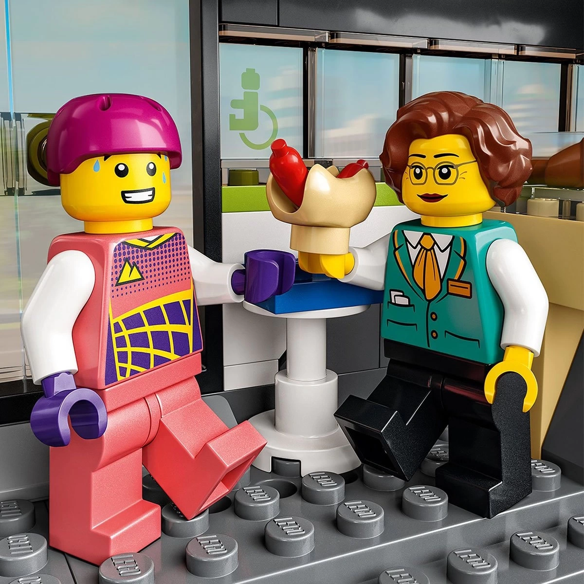 LEGO City Express Yolcu Treni seti (60337), tren temalı saatler süren oyunlar için çalışan, parlaklığı ayarlanabilir farlar ve LEGO Powered Up teknolojisine sahip uzaktan kumandalı hızlı lokomotif, bir yemek vagonu, yolcu vagonu, istasyon platformu, 24 ray parçası ve 6 minifigür içerir.