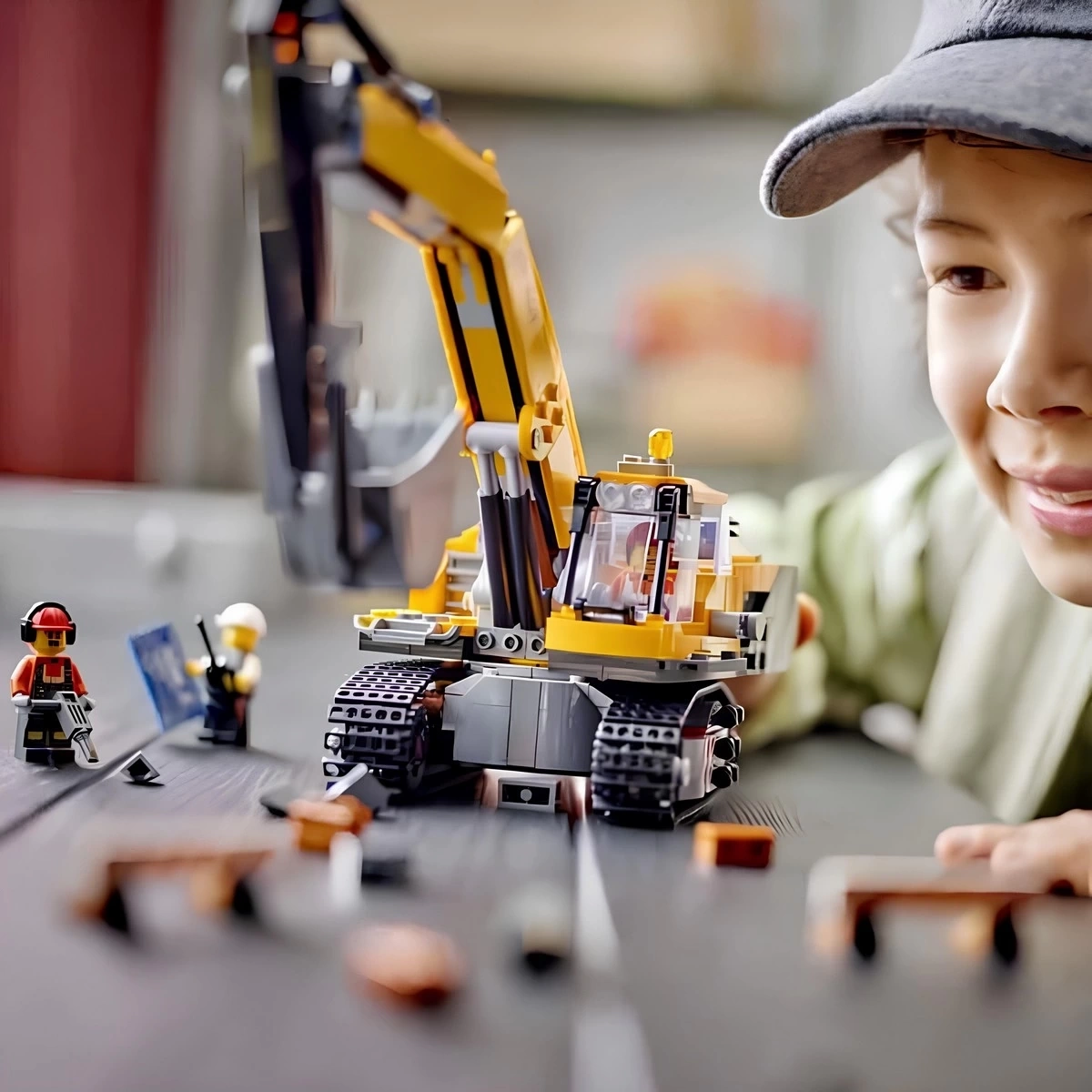 LEGO City Sarı İnşaat Ekskavatörü oyuncağıyla küçük model severinize sürpriz yapın. Bu gerçekçi oyuncak kazıcı, yol tutucu