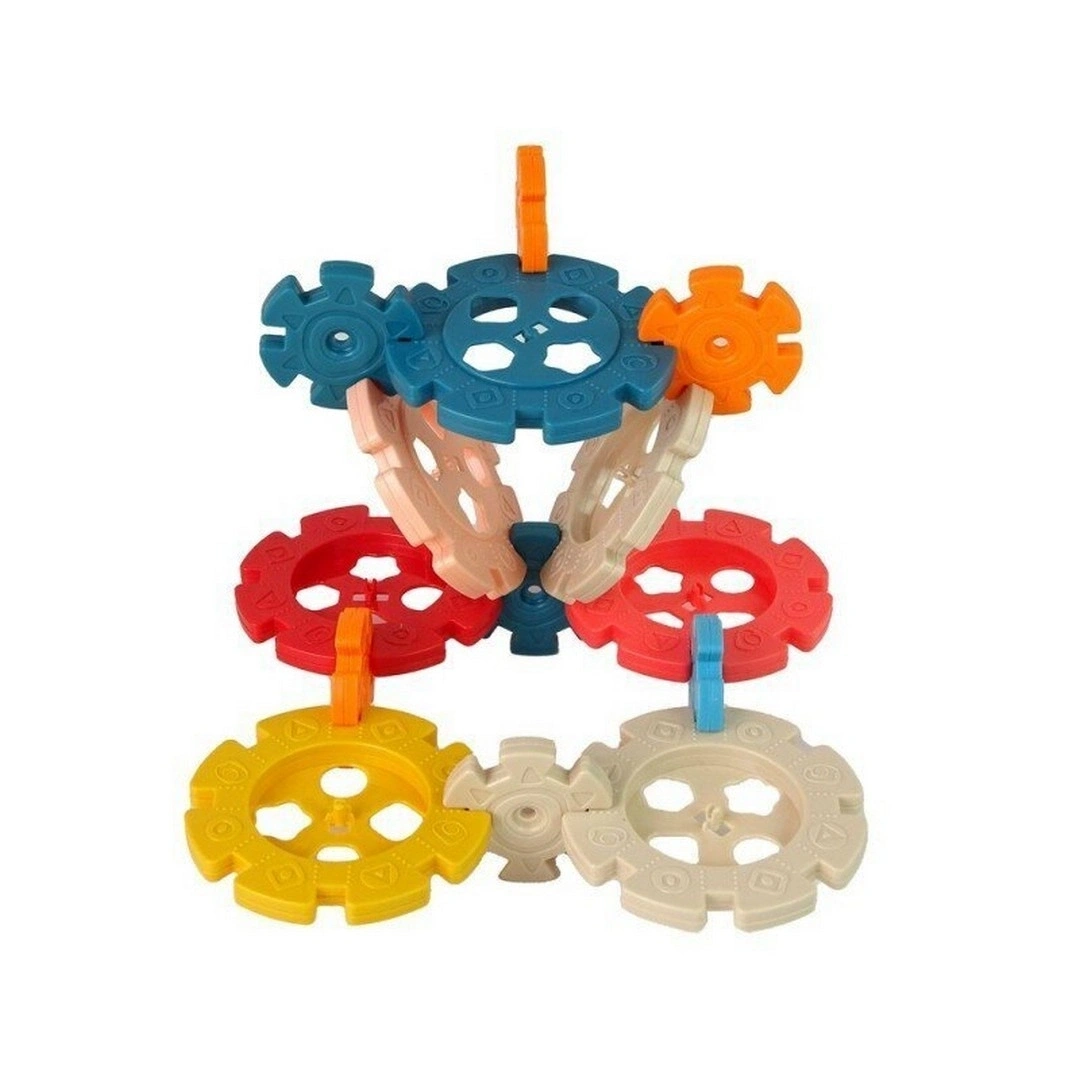 Renkli dişli parçalarla çocuklar kendi hareketli figürlerini ve yapıtlarını oluşturur.