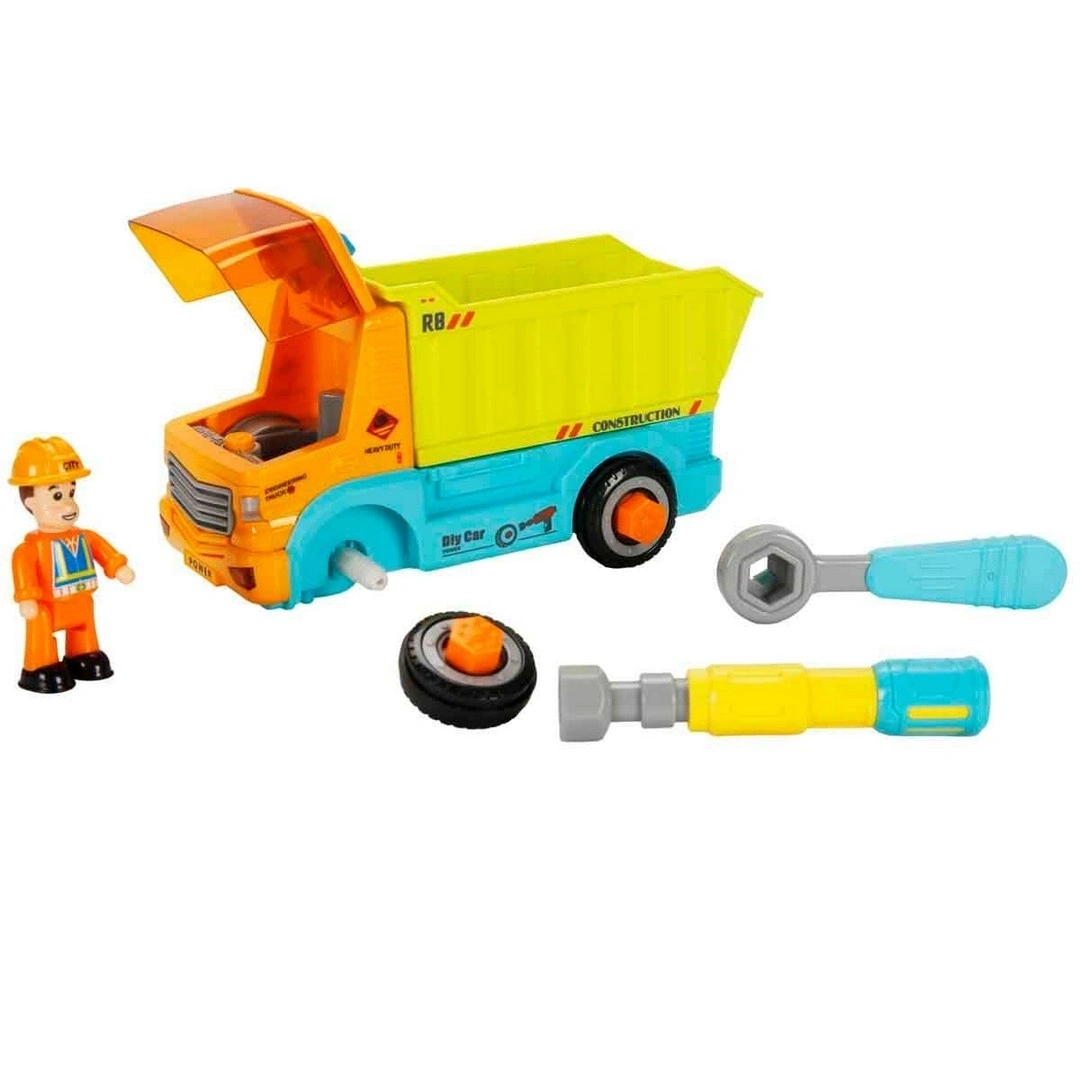 Ustalar hazırsa artık işe koyulma zamanı! Kutunun içinden çıkan aletler ile kamyonun parçalarını söküp tekrar takabilirsin. Yanındaki