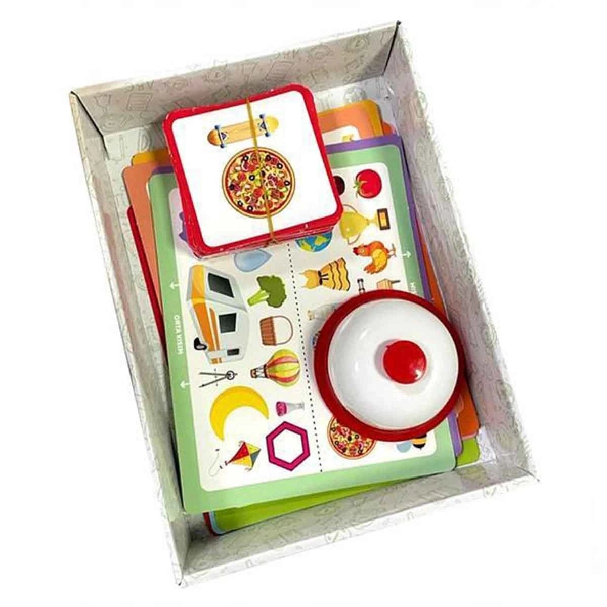 Kutu içerisinde; 9 adet oyun tablası, 64 adet oyun kartı ve 1 adet masa zili ve oyun anlatım kartı bulunmaktadır.