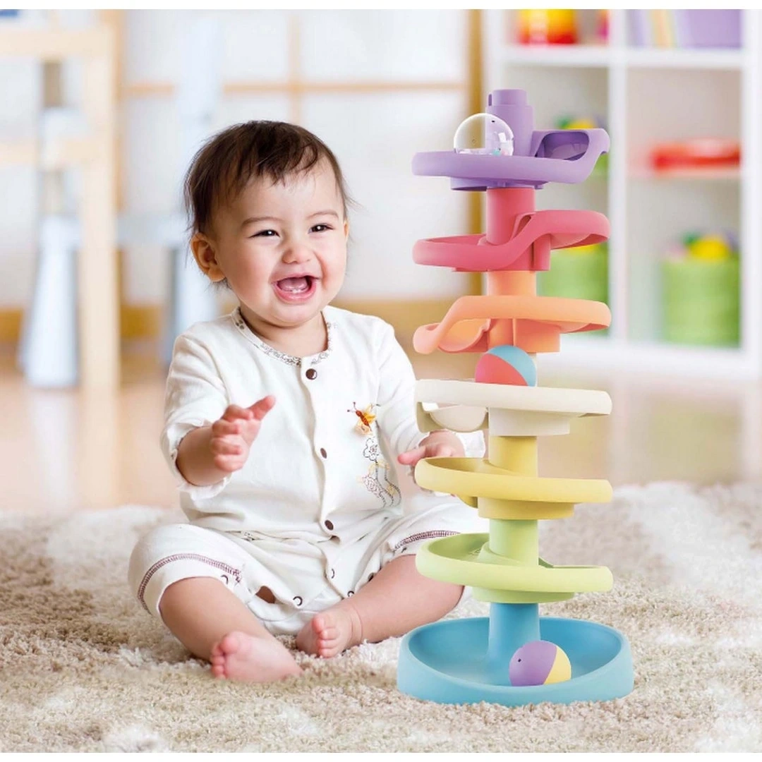 Spiral raydan yuvarlanan toplar sayesinde tüm çocuklar için eğlence garantilidir.