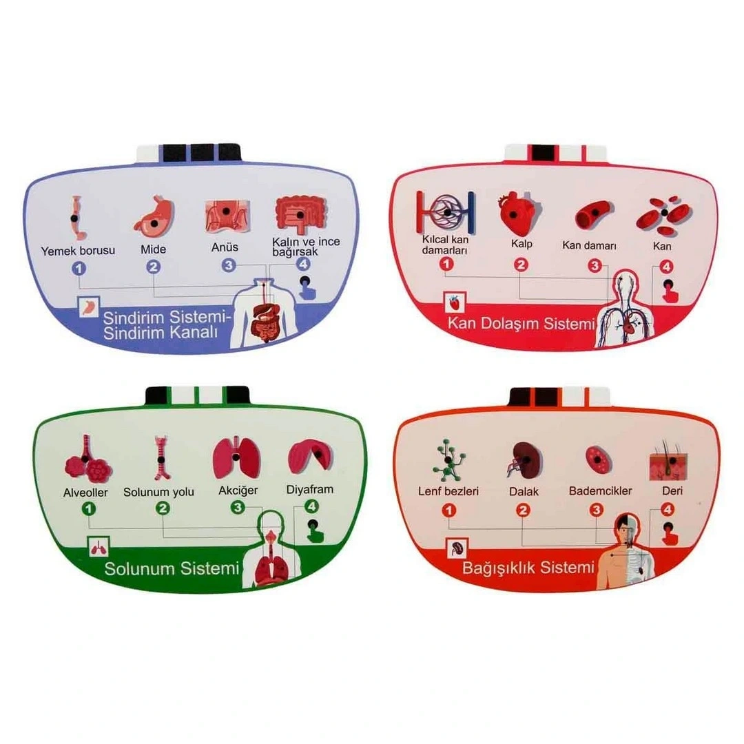 Kutu içerisinde; 18 adet organ, 4 adet bilgi kartı, taban ve kullanma kılavuzu bulunmaktadır.