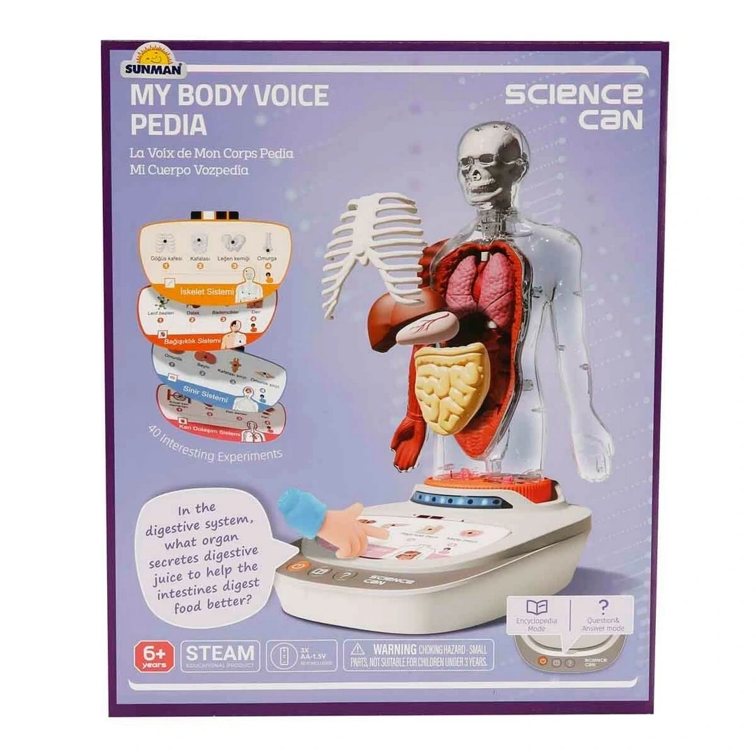 bizi nasıl ayakta tutuyor? İşte bu Sesli İnsan Vücudu Modeli Bilim Seti, seni kendi vücudun ile ilgili harika bir keşfe çıkarıyor.