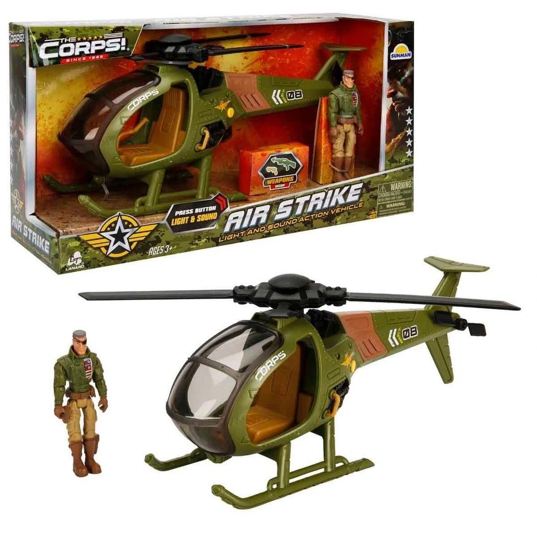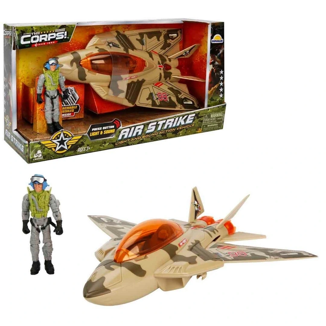 Savaş meydanına hükmetmeye hazır mısın? Sesli ve Işıklı The Corps Air Strike Askeri Oyun Seti, gerçekçi detayları ve