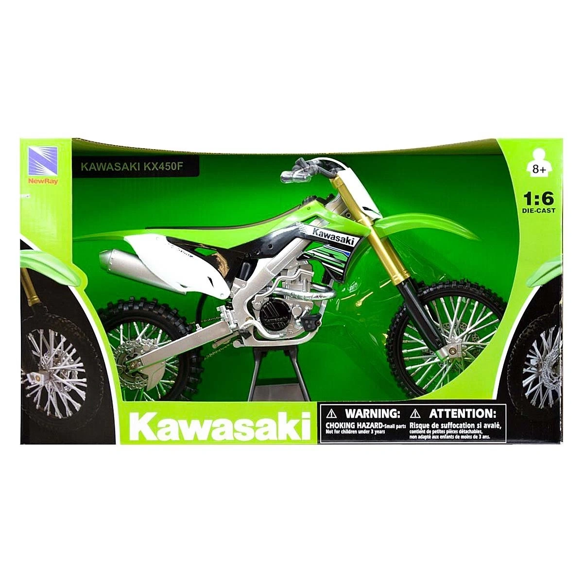1:6 ölçekli gerçekçi tasarım ve göz alıcı renkleriyle Kawasaki KX 450F 2012 model motosiklet sizlerle!