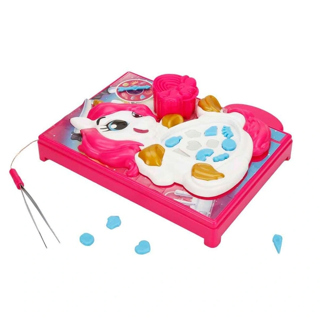 Slime tozunu karıştırın ve Unicorn’a stickerleri uygulayın. Unicorn’un karnına aksesuarlarını yerleştirin ve slime karışımını