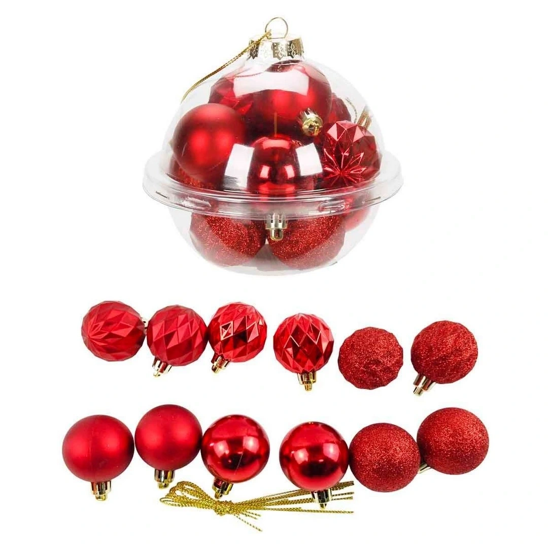 Yılbaşı Kırmızı Ağaç Süsü Karışık 12'li