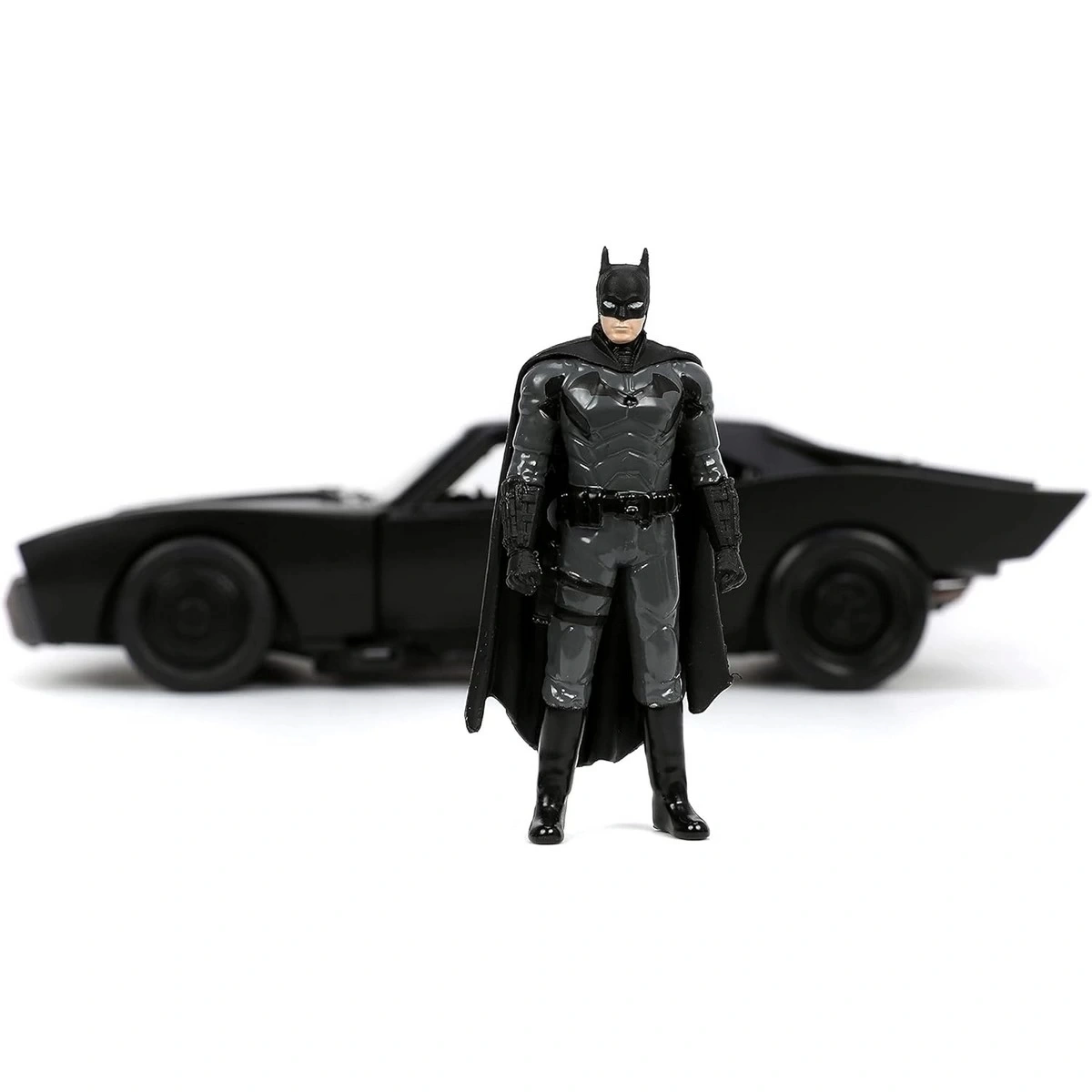 Jada 1/24 Batmobile Car Metal2,75" Batman heykelciğine sahip 1:24 ölçekli döküm Batmobile modeli