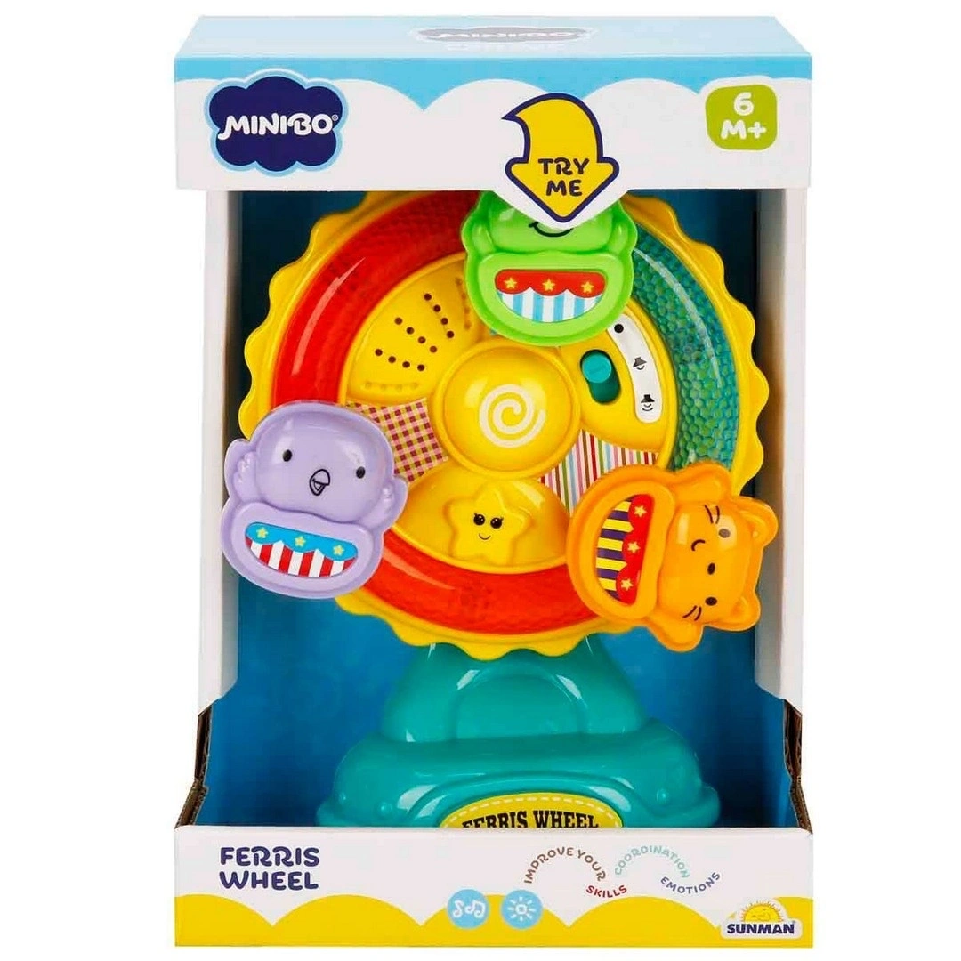 Miniklere hem oynarken eğlenecek hem de dikkatini çekecek bir oyuncak geliyor. Minibo Sesli ve Işıklı Dönme Dolap ile